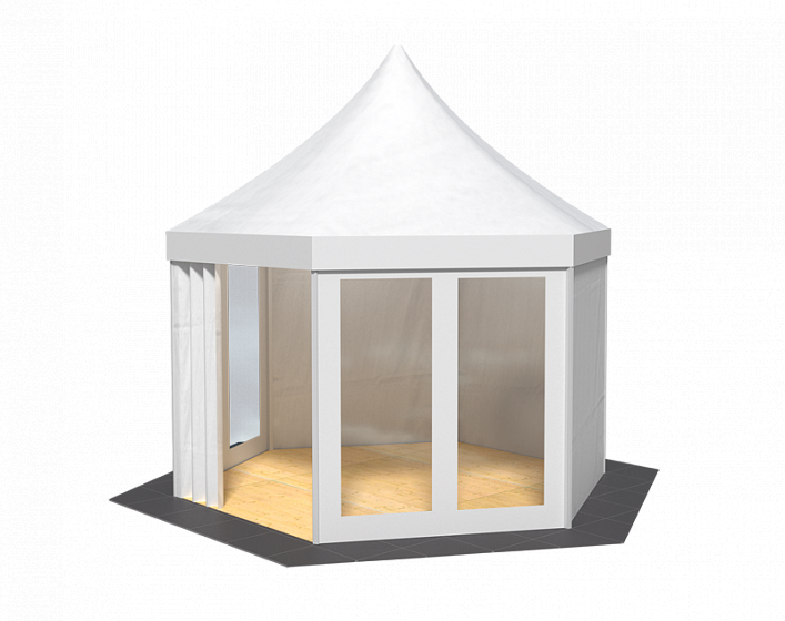 Шестигранная конструкция FIESTA HEXAGONAL — великолепный вариант для проведения делового приёма или же вечеринки в большой компании.