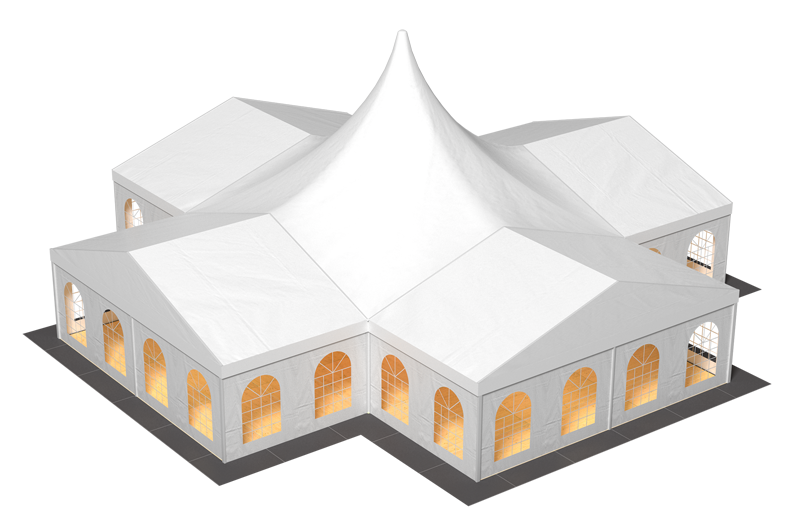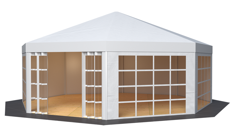 Организуйте внутреннее пространство павильона, разделяя его на тематические зоны, меняя высоту стен, конька крыши и её самой высокой точки в соответствии с требованиями проекта. Широкий выбор элементов декора и мебели прекрасно подчеркнёт статус вашего мероприятия.
